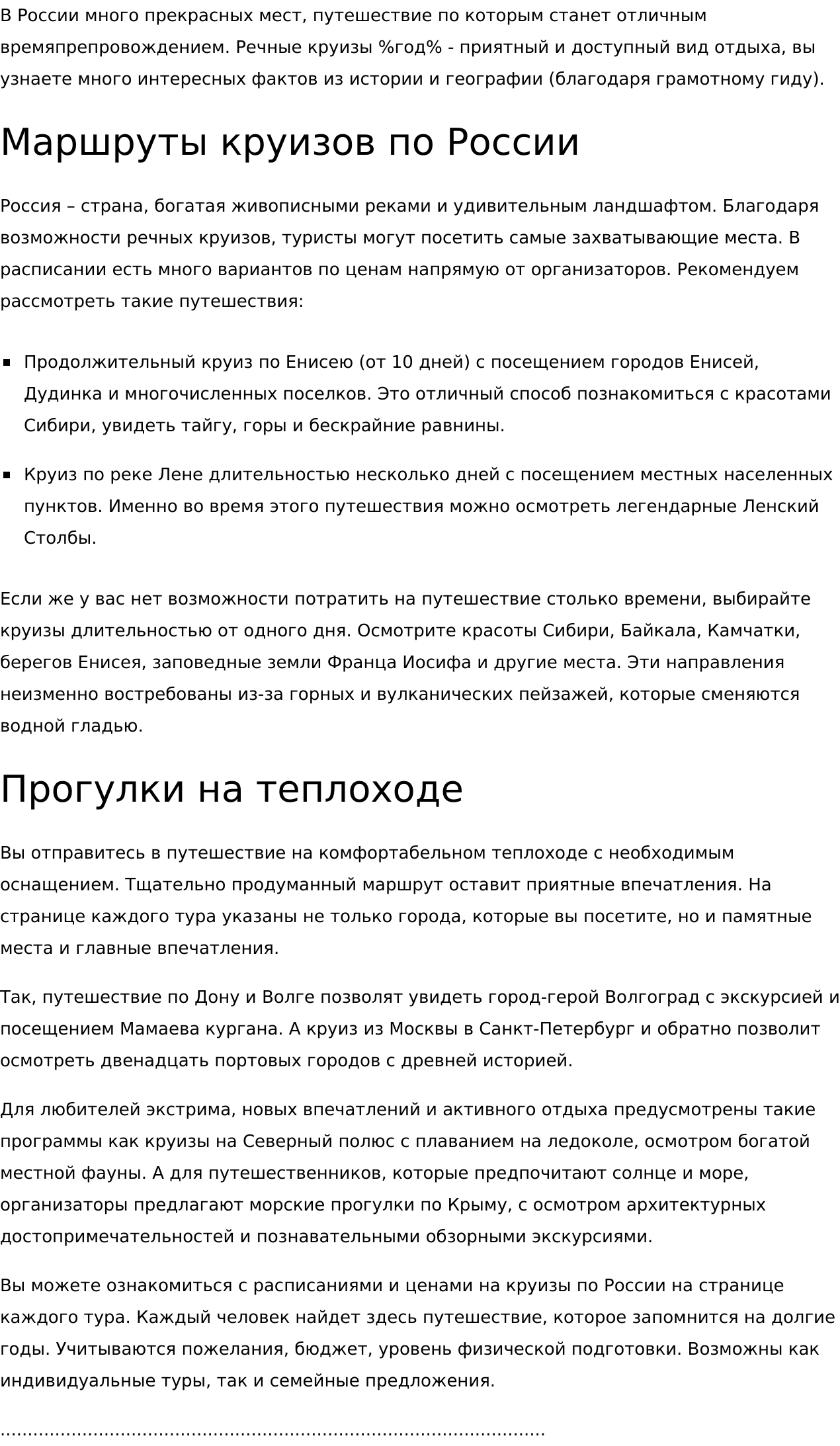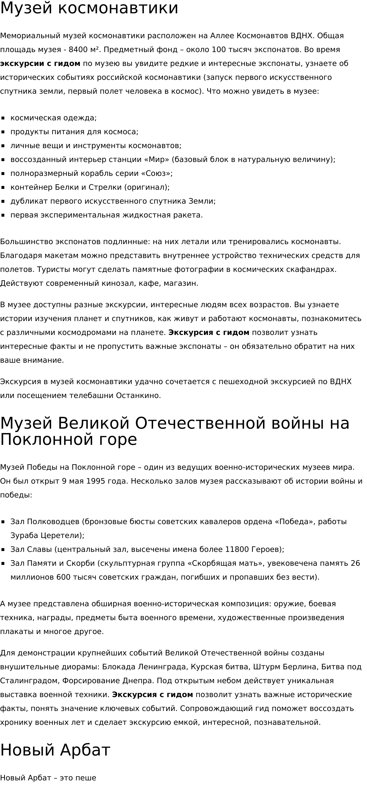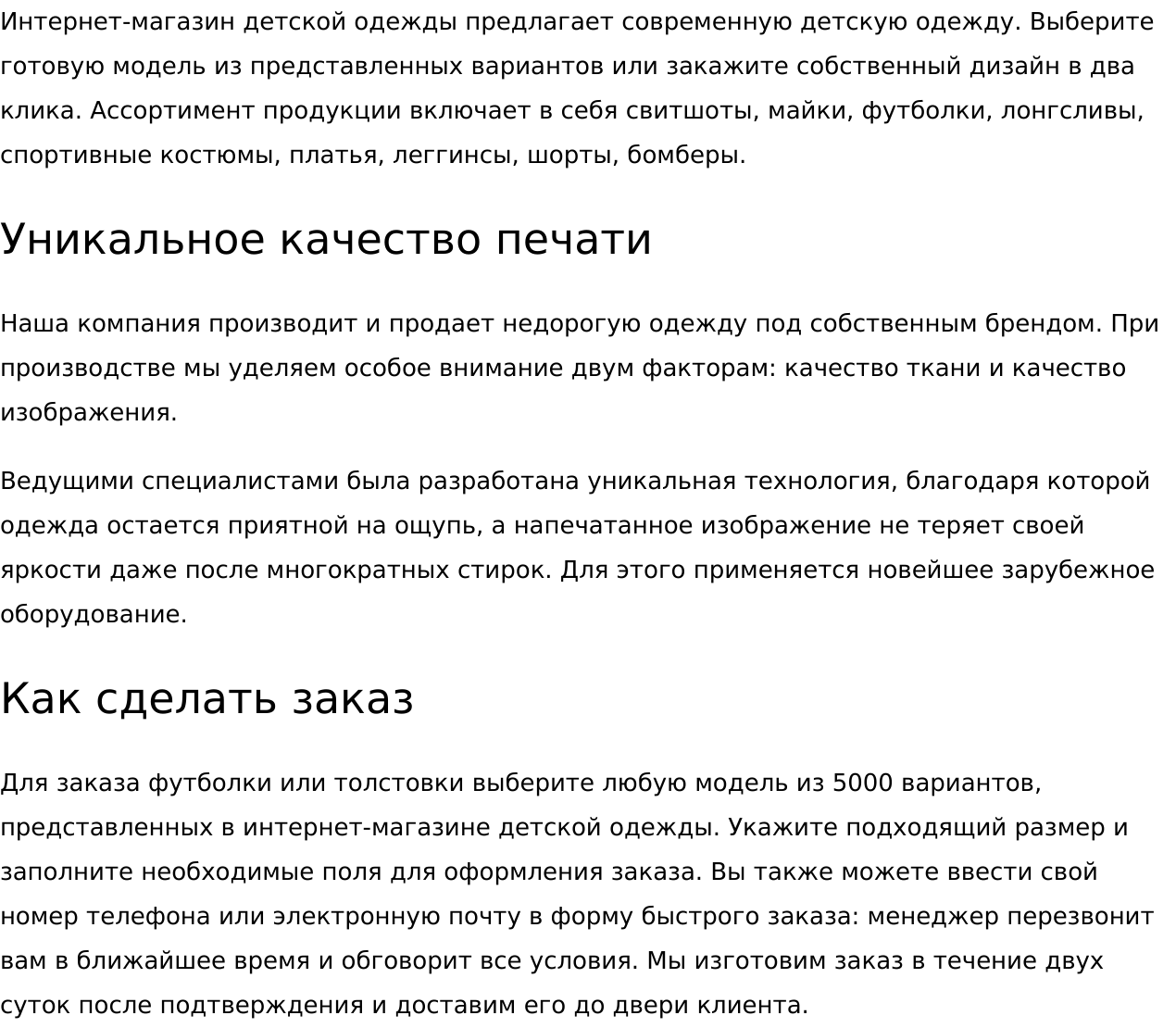 - тексты для главных страниц;