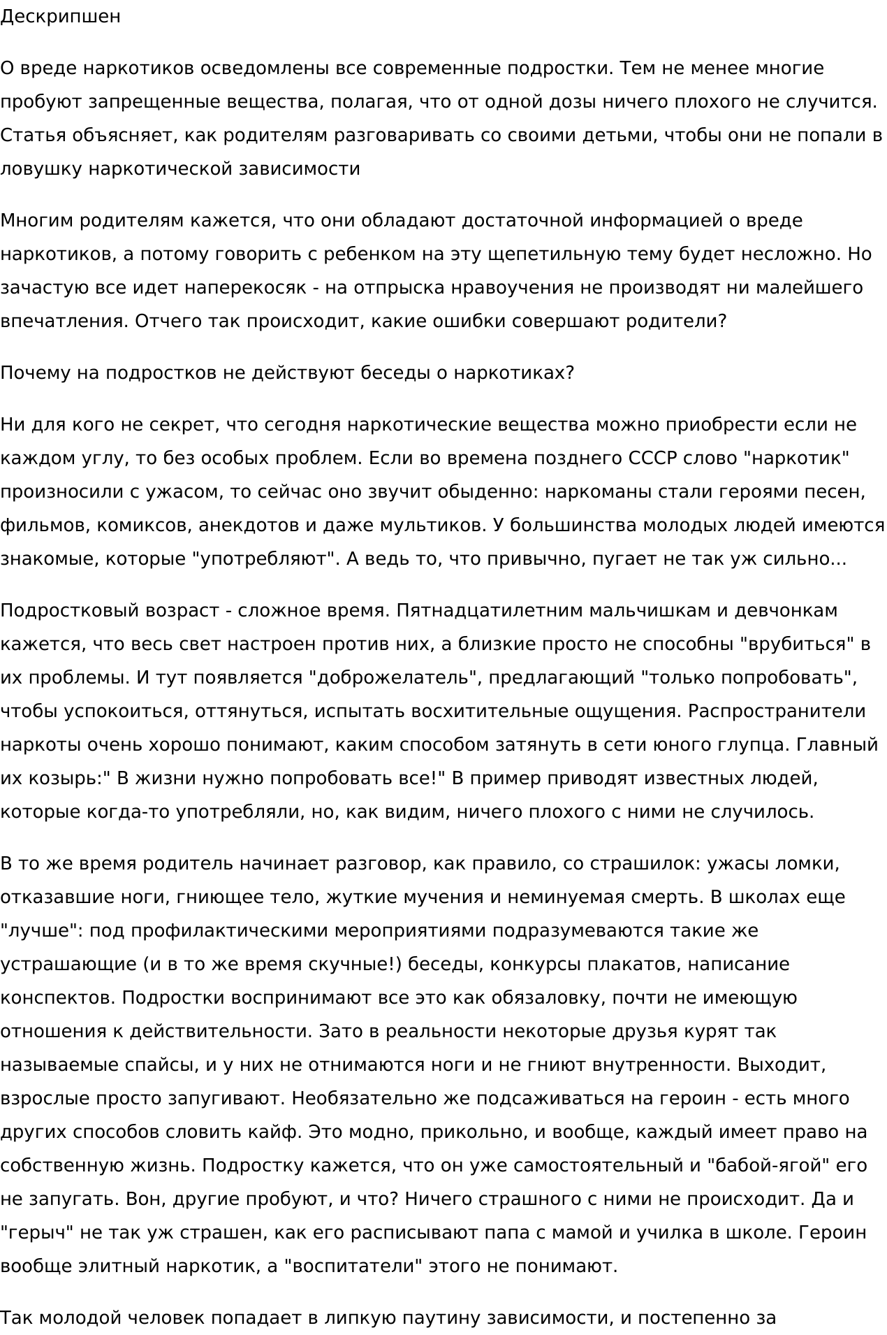 — описание товаров для интернет-магазинов;