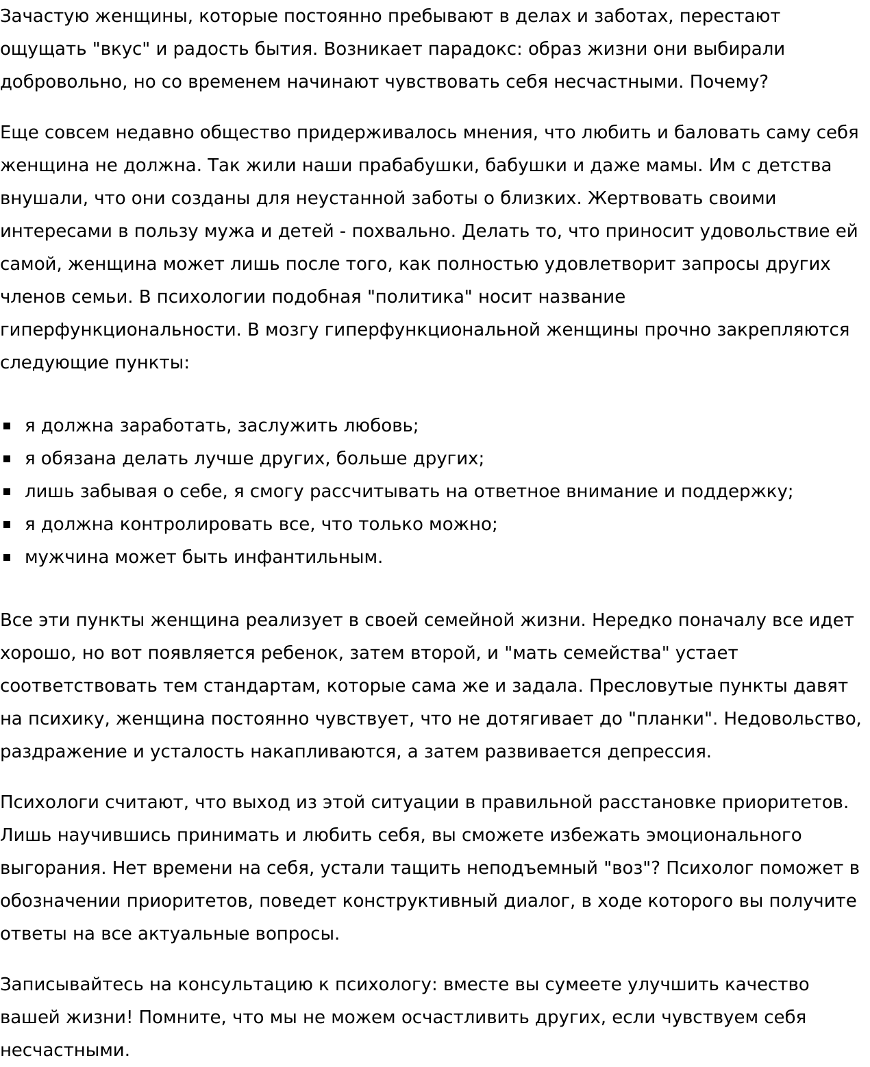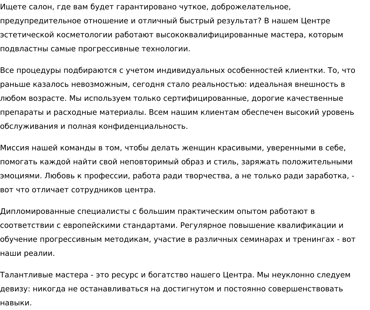 Сейчас копирайтинг - мое основное занятие. Постоянно учусь, осваиваю навыки, необходимые для написания хороших текстов. Пишу просто и понятно, много работаю с seo. Качественно выполняю заказы с большой плотностью ключей, максимально погружаюсь в тему. Пишу информационные и информационно-коммерческие статьи. Не берусь только за статьи на узкоспециализированные темы — экономика, бухгалтерия, IT-технологии, юриспруденция. Табу — запрещенная законом тематика. Люблю работать на постоянной основе. Если есть замечания со стороны заказчика, реагирую адекватно и быстро корректирую текст.