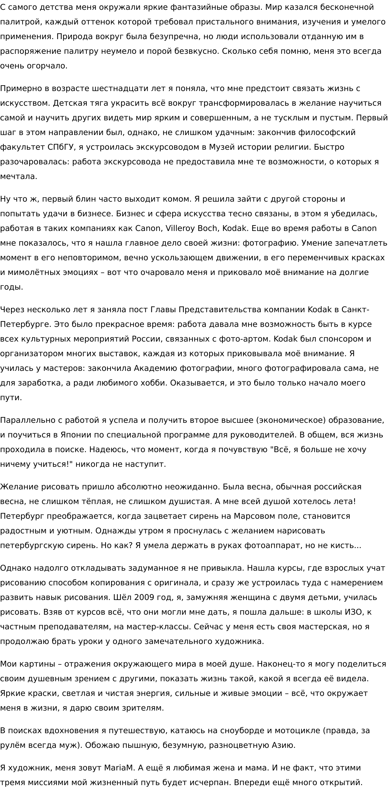 2) Два высших образования (классическая филология и история искусств) свидетельствуют о том, что я, во-первых, умею и люблю учиться. Во-вторых, у меня нет проблем с орфографией и пунктуацией. А ещё я отличаю Гегеля от Шлегеля, Гогена от Родена, и всё ещё надеюсь, что эти знания мне когда-нибудь пригодятся.