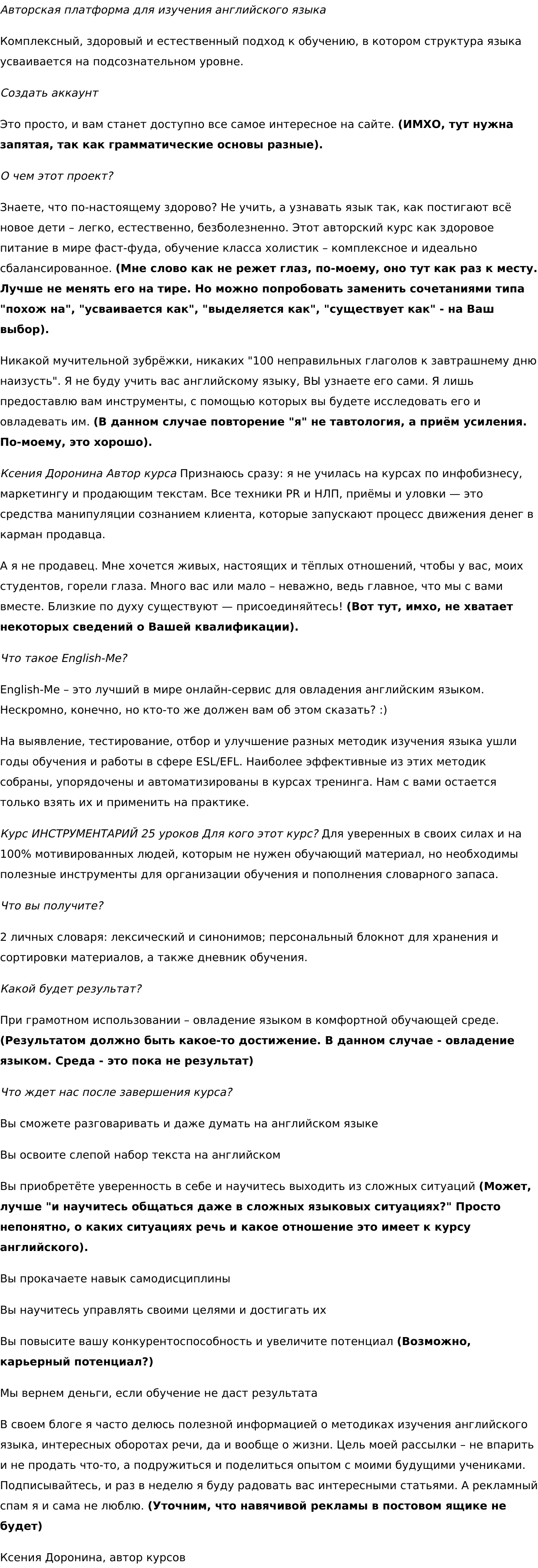 6) Годы самоотверженного труда в газетах и журналах научили меня не только составлять, но и редактировать различные тексты. Могу из самого бестолкового нагромождения фраз сделать конфетку.