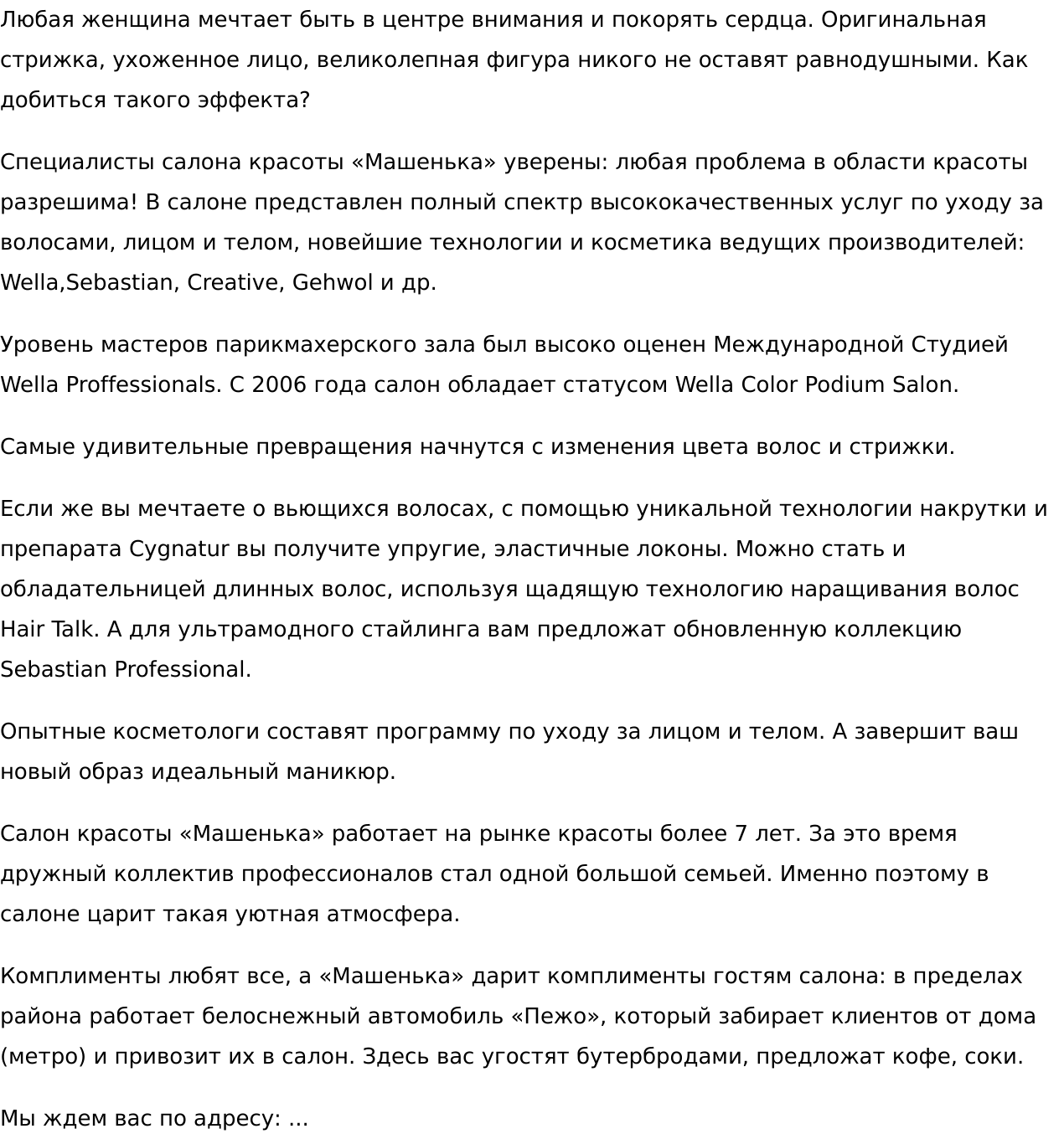 Занимаюсь подготовкой пресс-релизов, текстов для лендингов, презентаций, брошюр, каталогов, флаеров, рассылок.
