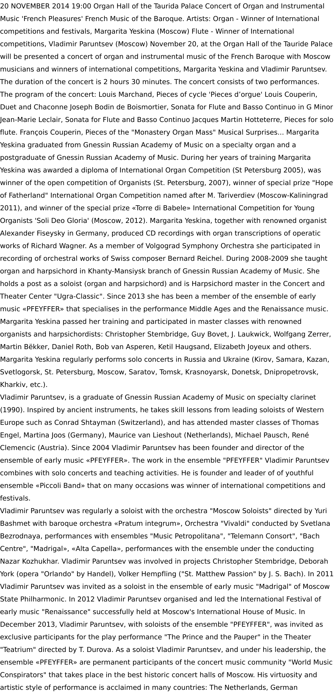 О себе : Музыковед, Преподаватель Истории музыки и Истории искусств.