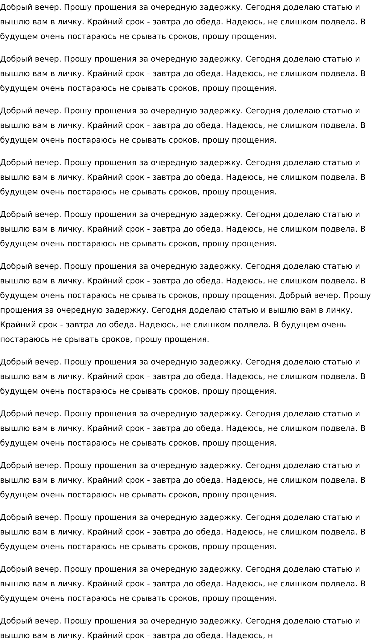 Не пишу сложных технических текстов, которые требуют соответствующего образования. Не беру переводов. Не работаю за пределами бюро и не обмениваюсь контактами.