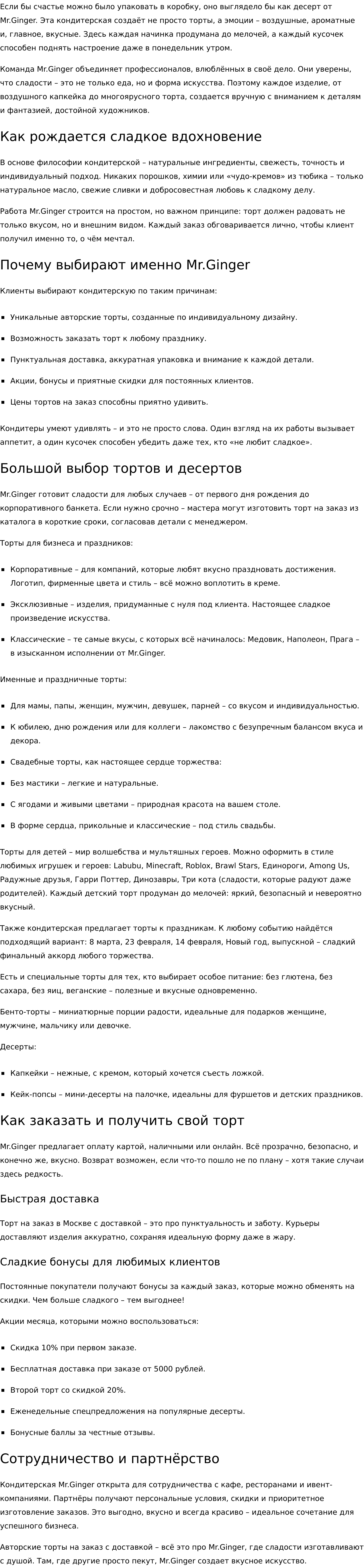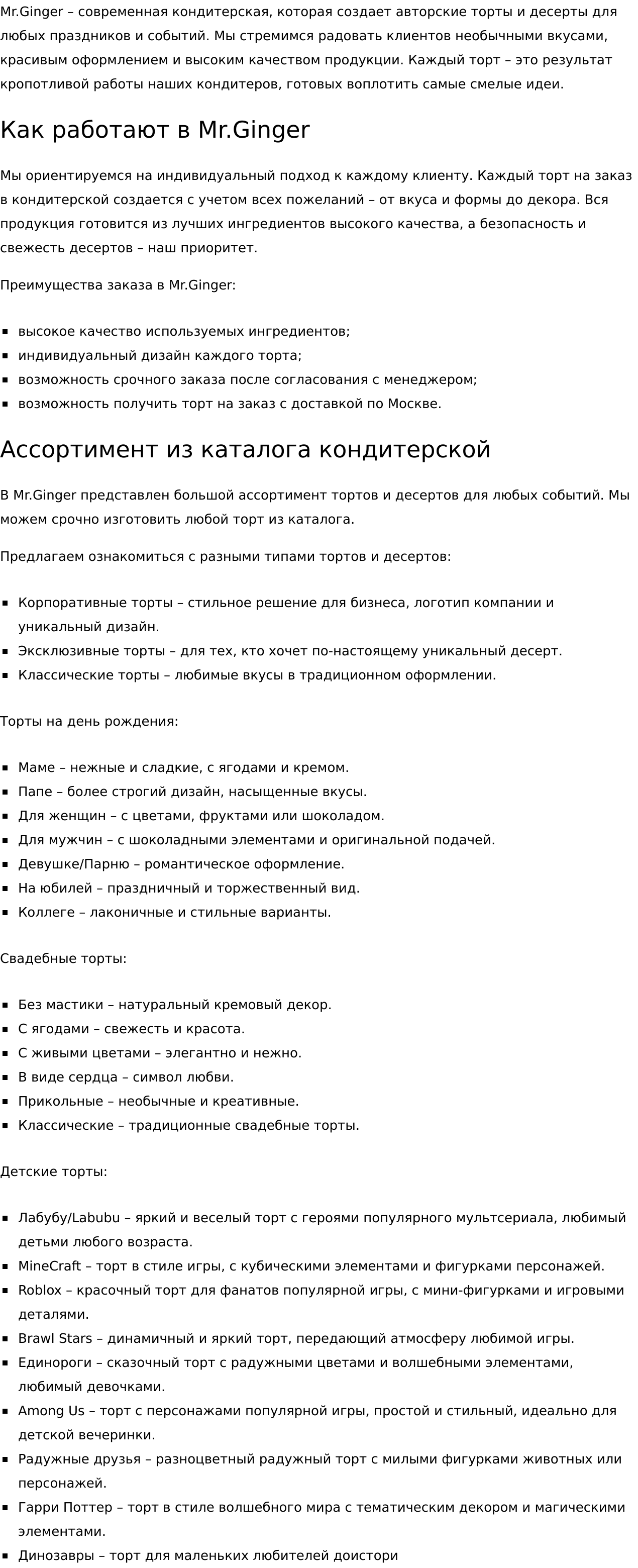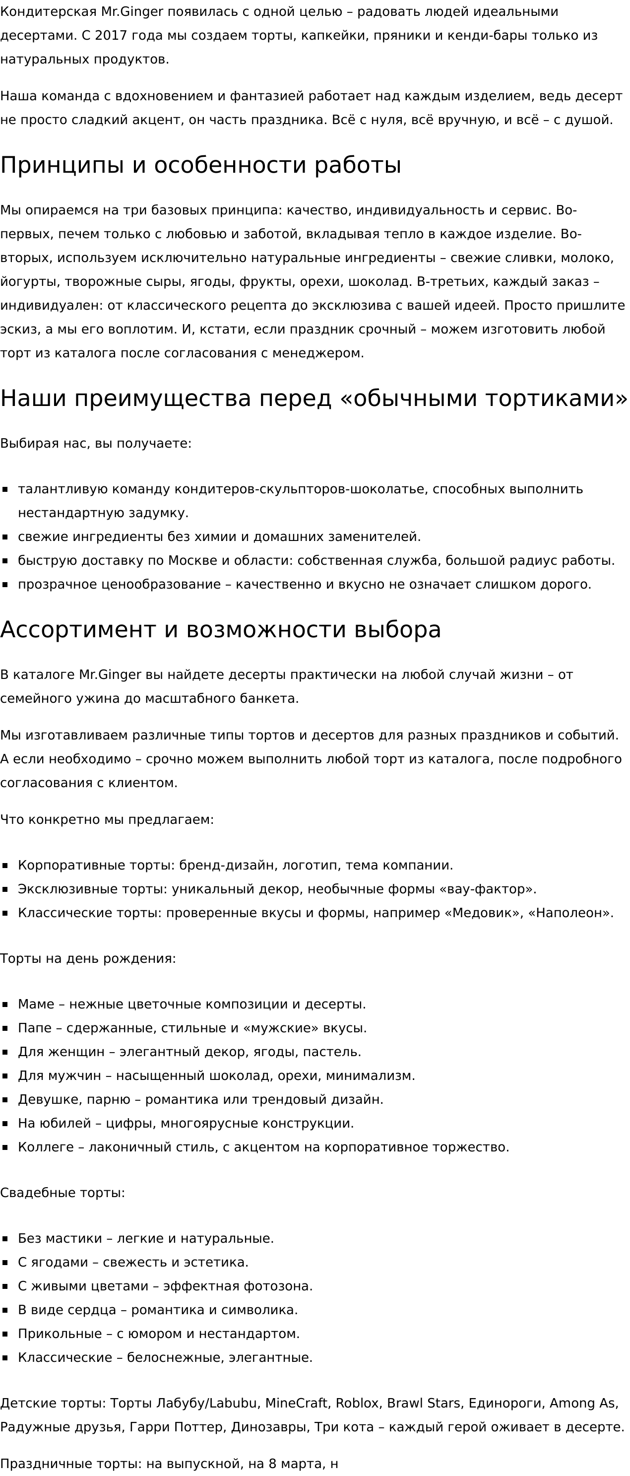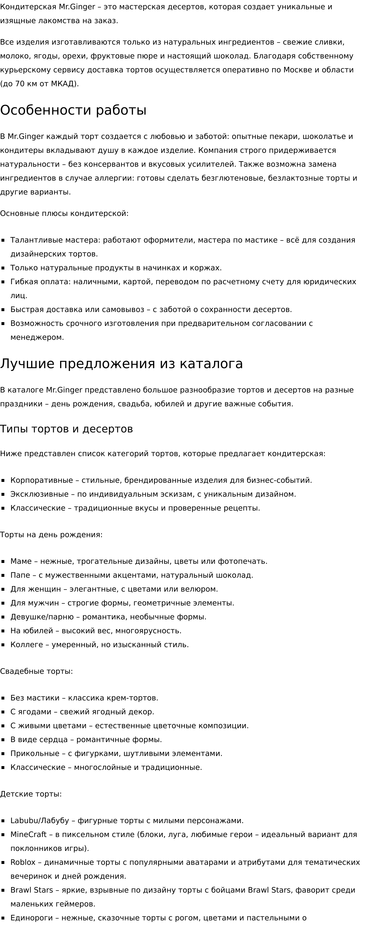 • описания товаров;