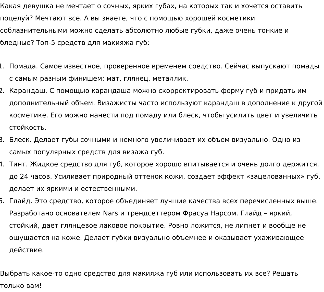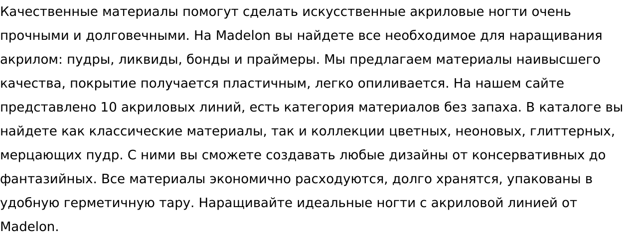 Здравствуйте, уважаемые заказчики! Я занимаюсь копирайтингом с 2012 года. Пишу статьи, обзоры, информационные и рекламные тексты, карточки товаров, контент для социальных сетей. Работаю с разными темами, быстро учусь и обрабатываю новую информацию, готова к экспериментам. Перед тем, как приступать к заказу, внимательно читаю ТЗ и берусь только за то, что способна выполнить отлично и в срок.