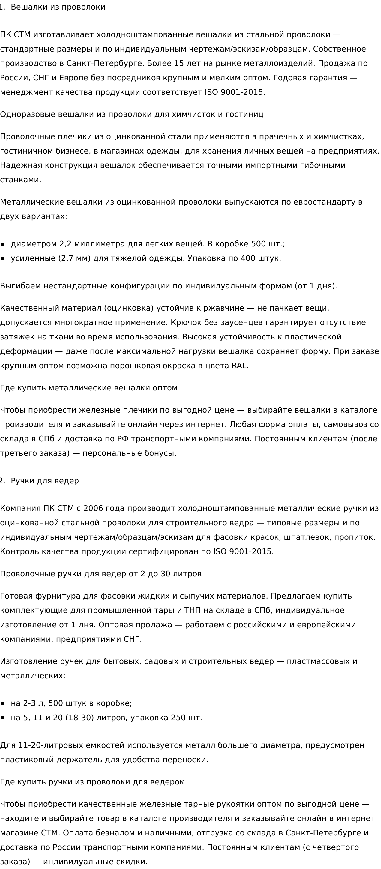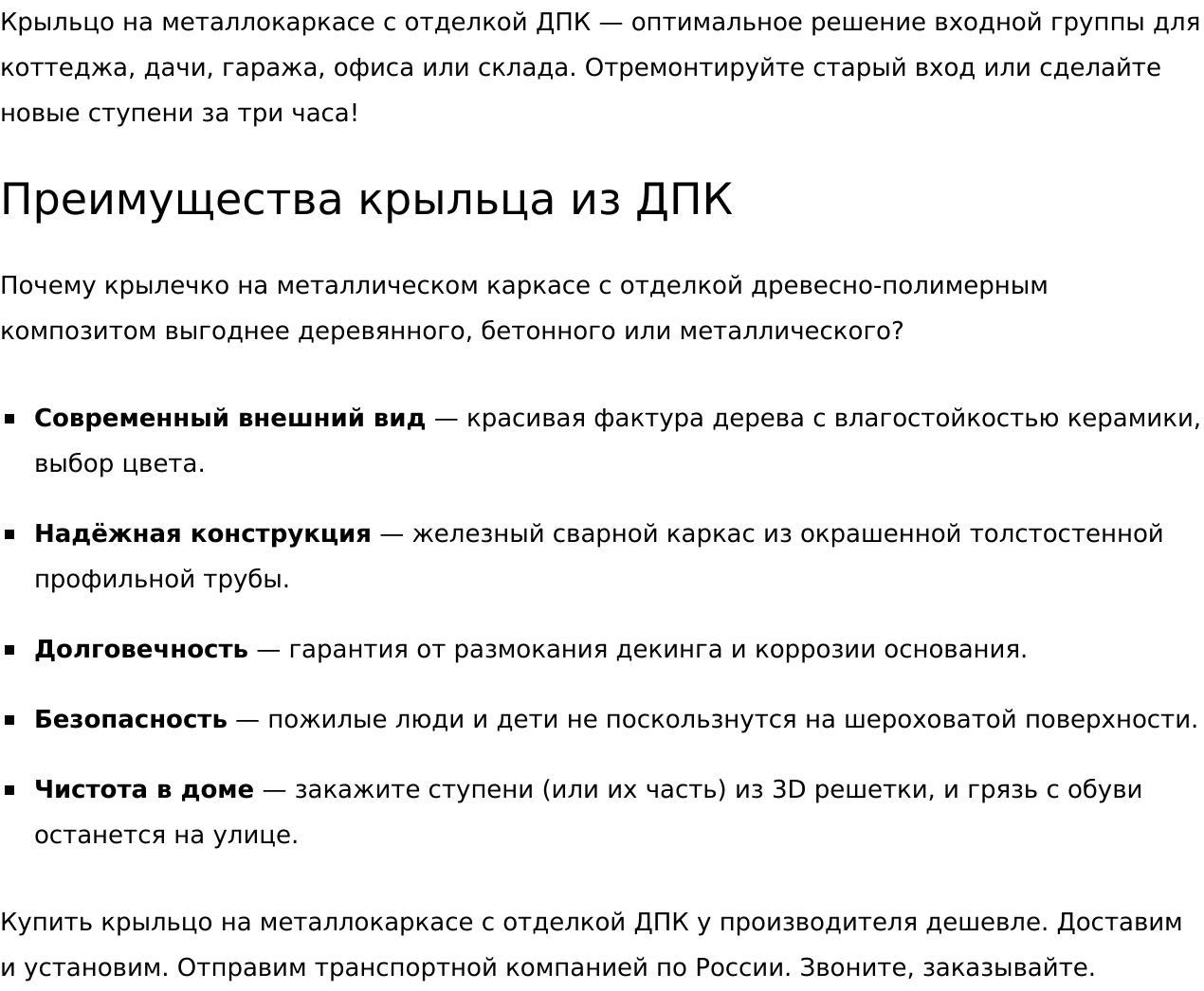 • Понятные описания продукции, услуг, категорий.