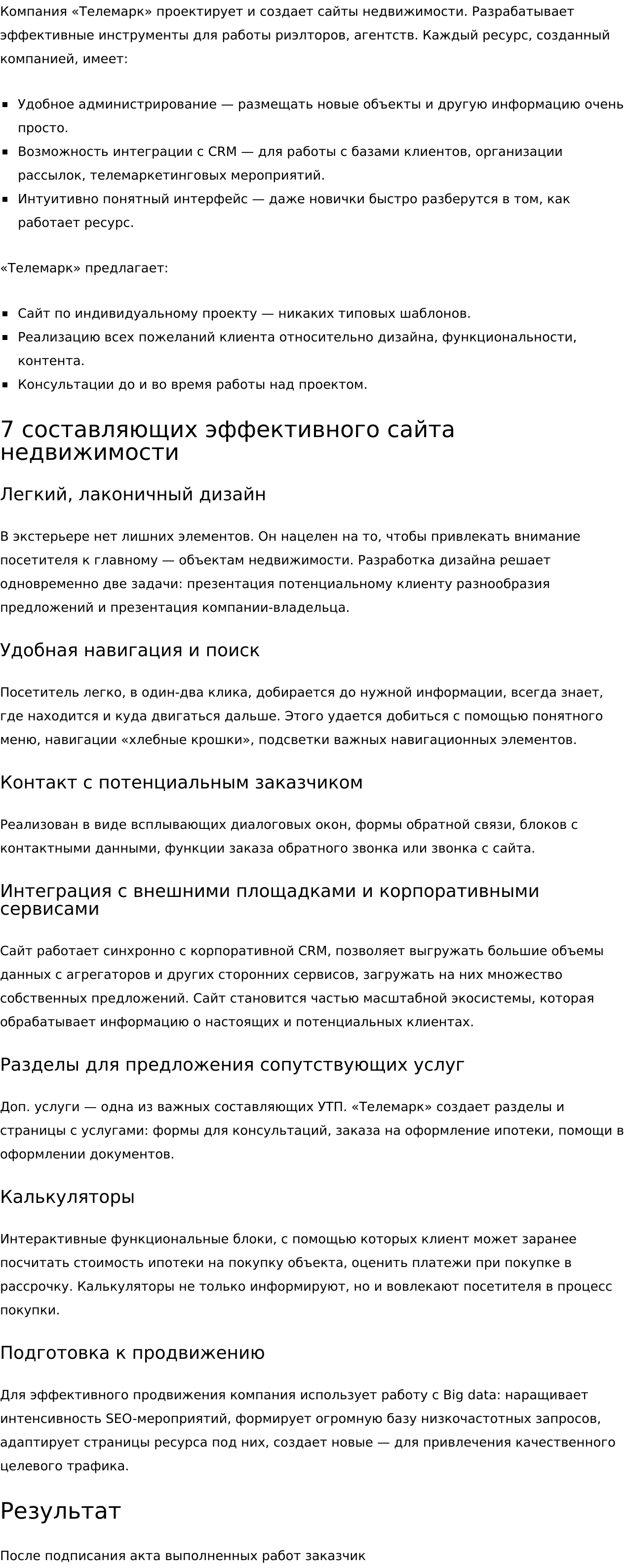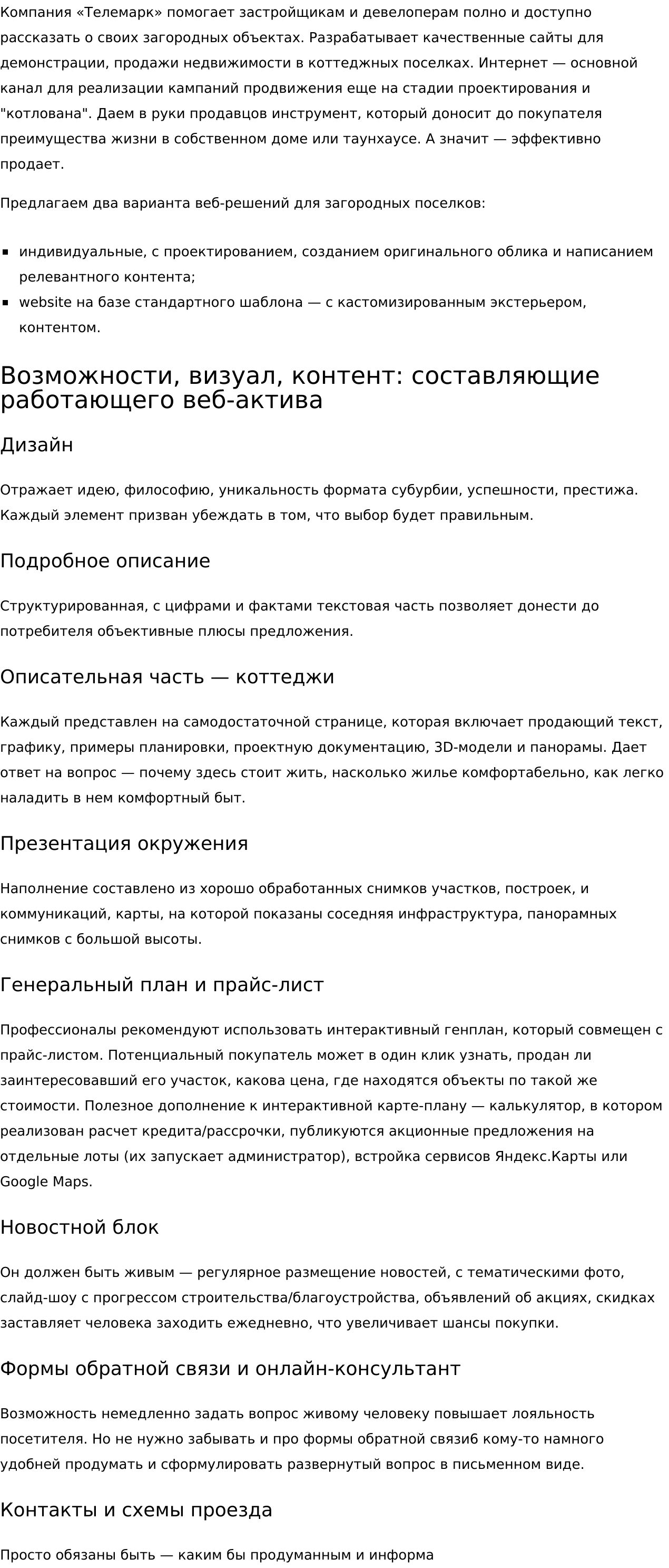 - презентации и описание услуг.