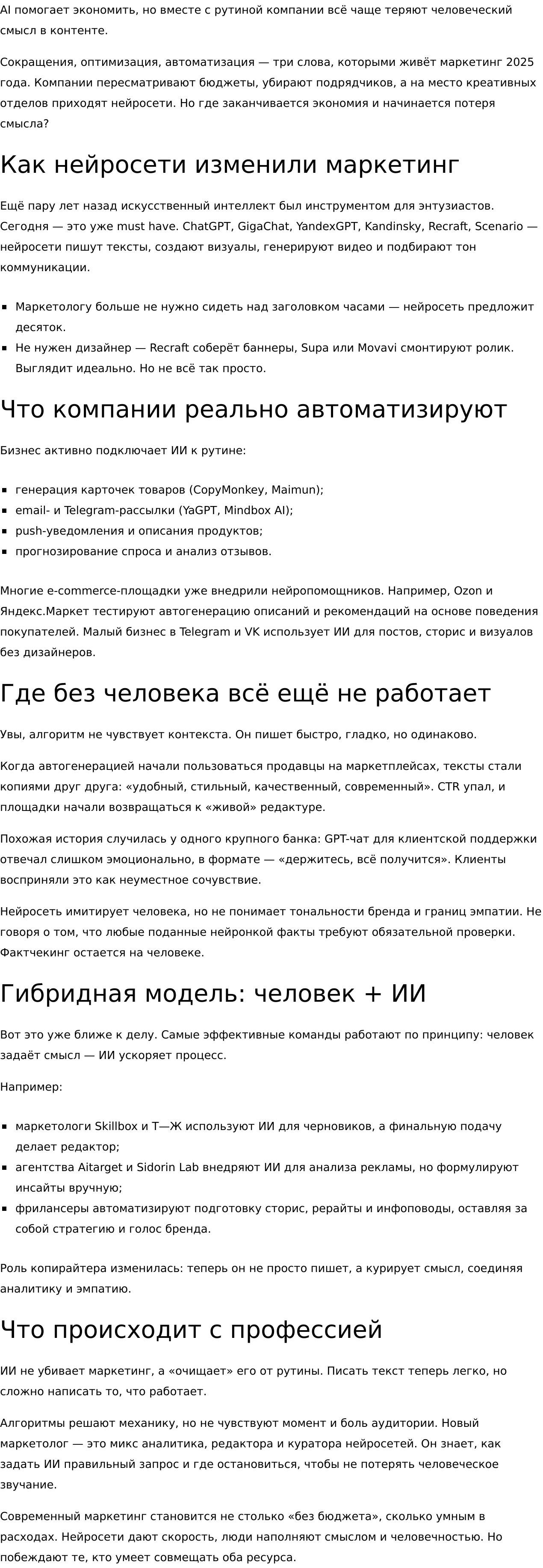 ·SEO-оптимизация без потери читабельности и смысла.