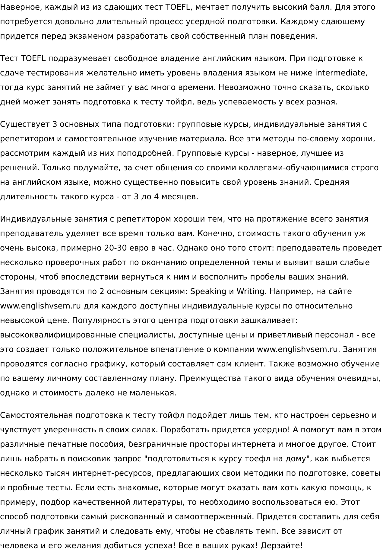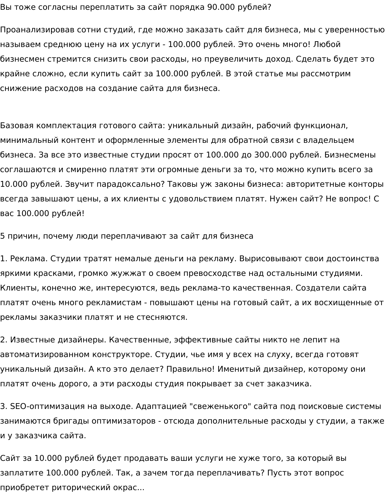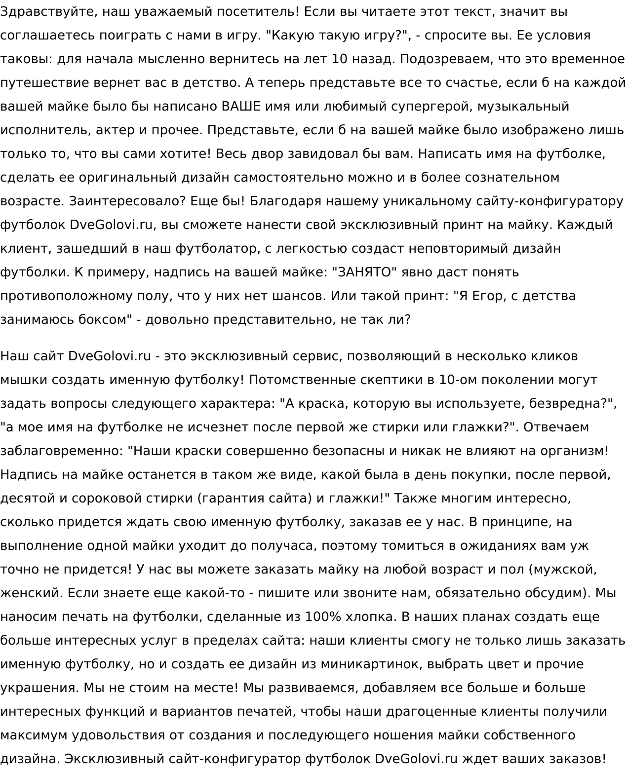 Я готов работать над вашим заказом десяток часов — достижение результата для меня превыше всего. Я принципиален и со своими принципами сотрудничаю уже практически 5 лет в сфере интернет-писательства. Прочитал много книг об искусстве писать интересно, просмотрел массу видеоуроков: достойных внимания и не достойных. Все это я делаю ради того, чтобы мой текст читали люди. Ведь не секрет, что львиная доля текстового контента на сайтах нечитабельна. И это очень грустно. Давайте начнем с вашего сайта. Результат моей работы не заставит себя долго ждать.