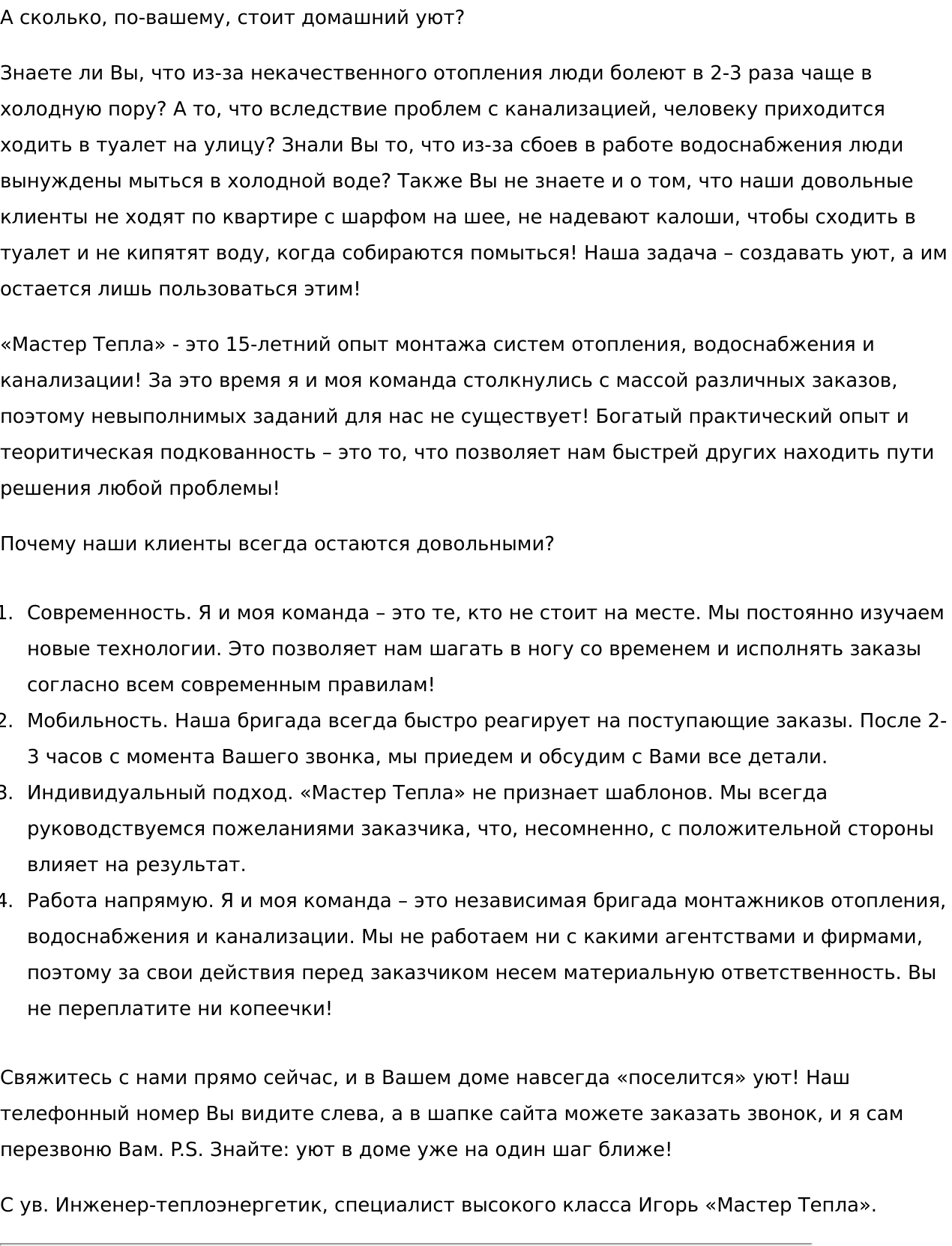 Быть может, я что-то упустил. Если вас заинтересовало сотрудничество со мной, то обратитесь ко мне за бесплатной консультацией. Уверяю вас, вместе мы что-нибудь придумаем.