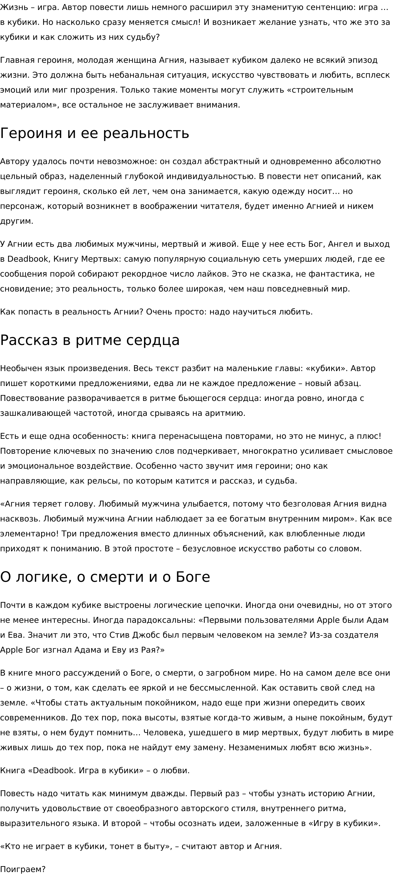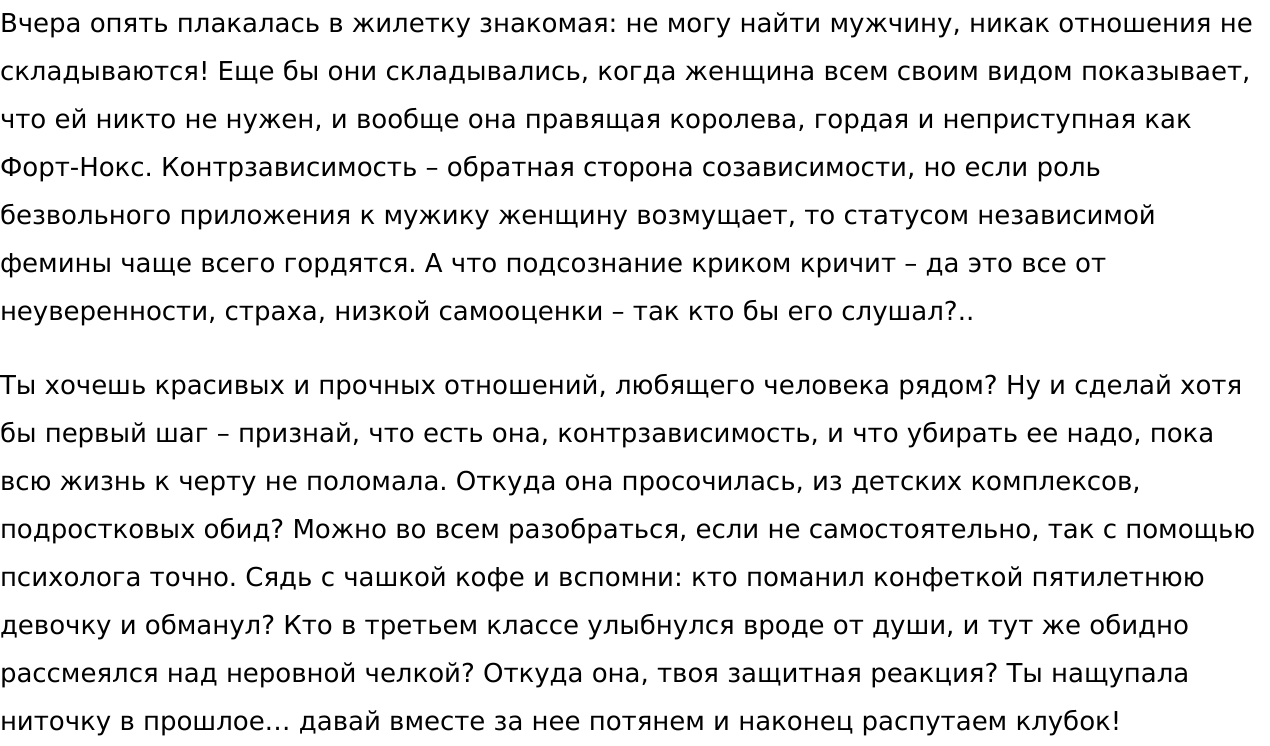 Тактична, не капризна, не конфликтна. Амбициями в стиле «я пишу лучше всех» давно не страдаю. Готова к диалогам и доработкам до полного взаимопонимания.